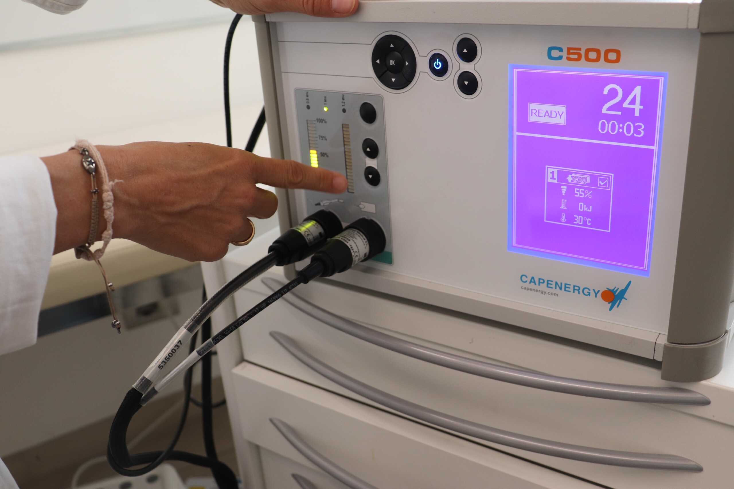 Applicazione. Durante la procedura, un dispositivo a radiofrequenza viene applicato sulla zona interessata. Le onde elettromagnetiche penetrano nei tessuti sottocutanei senza danneggiare la superficie della pelle.
