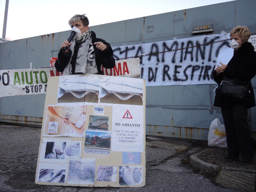 Il presidio contro l’amianto alla Leuci dello scorso gennaio