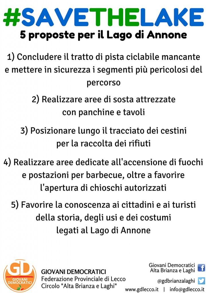 Siamo ora dunque a scrivere a Voi Amministratori per sottoporre al Vostro giudizio le nostre idee, con la volontà di ricercare un incontro che in un clima di confronto politico sano e costruttivo possa portare ad una comunione di intenti e alla realizzazione di queste proposte nel breve-medio termine, per un miglioramento complessivo della situazione del Lago di Annone e una maggior soddisfazione da parte dei nostri concittadini.