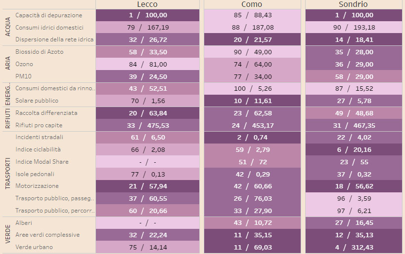 Il confronto tra Lecco, Como (86esima) e Sondrio (41esima)