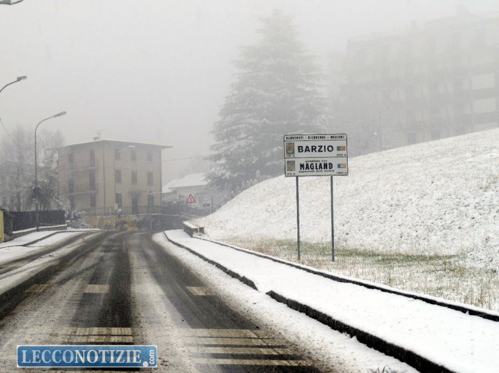 A Ballabio è arrivata al momento una lieve spolveratina con strade pulite e solamente prati e tetti che si stanno imbiancando; attacca invece da Barzio in su dove qualche strada poco trafficata inizia ad essere ricoperta di neve, così come prati e tetti sono stati ormai ricoperti dal soffice manto bianco. Questa la situazione poco prima delle 13 dopo il nostro tour, ma sembrerebbe che la situazione sia destinata a peggiorare come da previsioni.