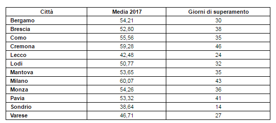 A lanciare l’allarme è ancora una volta Legambiente: “Da oggi i capoluoghi di provincia risultano fuori legge, così come Cremona, che segna il 46° giorno di sforamento da inizio anno, Milano il 43°, Pavia il 41°, Brescia il 38° e Monza il 36°”.