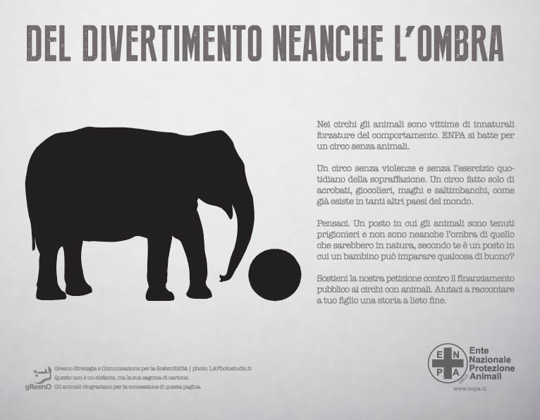 LECCO – Anche l’ENPA di Lecco aderisce alla campagna ““Del divertimento neanche l’ombra”, incentrata su un argomento che sta a tutti noi particolarmente a cuore: la promozione di un circo senza animali.