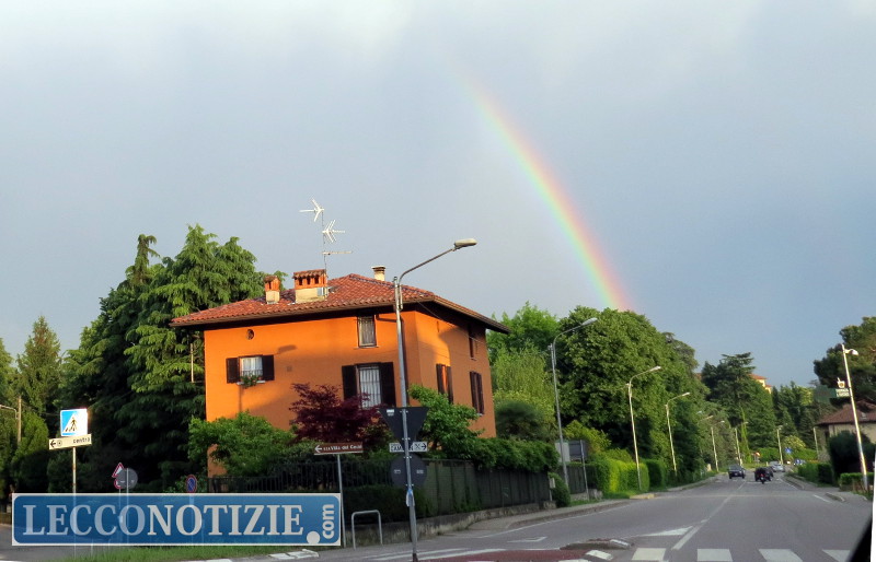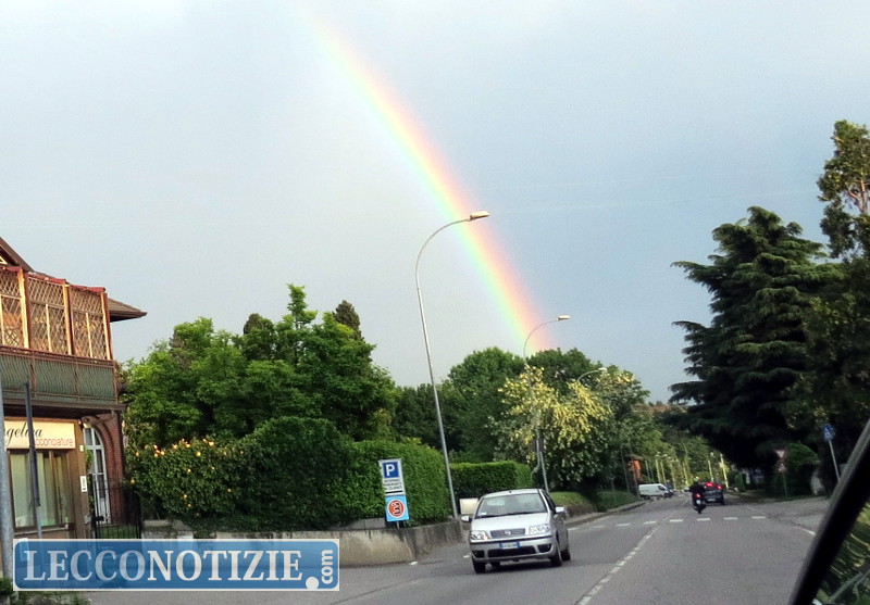 MERATE – Dopo Lecco (vedi articolo) la magia dell’arcobaleno ha fatto capolino sopra i cieli di Merate nel tardo pomeriggio di ieri, sabato. Un pennacchio multicolore è apparso sopra la cittadina brianzola e molte persone hanno rivolto il naso all’in su per ammirare lo splendido spettacolo. Tanti anche coloro che, armati di smartphone, hanno immortalato la pennellata colorata che ha rallegrato il sabato meratese.