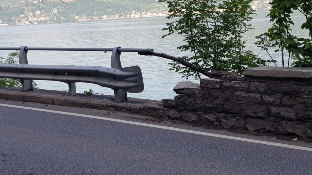 Lo dimostrano le innumerevoli stanghe di legno che sostituiscono i guardrail danneggiati o i muretti a valle mancanti. documentiamo la condizione anomala delle acque lacustri a Bellano che si presentano torbide e melmose probabilmente dovute al fatto che per anni i liquami fognari sono stati scaricati direttamente a lago.