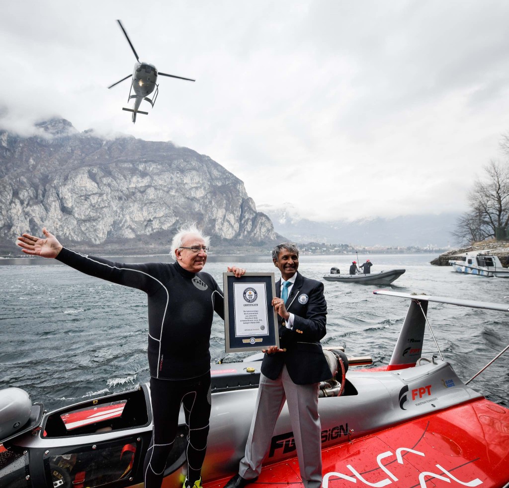 Il record è stato stabilito, quando l’avveniristico scafo rosso “a tre punti” ha raggiunto la velocità di 277.515 Km/h, alla presenza dei funzionari del Guinness World Records, che hanno certificato il record dopo le verifiche di rito, effettuate con una procedura che garantisce una precisione al millesimo di secondo grazie a rilevamenti e misurazioni effettuate esclusivamente per via elettronica.