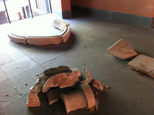 A dire il vero, per timore di essere smentiti, di sopralluoghi ne abbiamo effettuati due, uno nel settembre del 2011 subito dopo aver ricevuto la sgnalazione e uno proprio ieri, a distanza di circa 9 mesi, trovando la medesima, desertica, situazione. Per rigore di cronaca, un paio di cose sono cambiate: in una zona, sono state infatti eliminate le scritte nere su mattocini rossi realizzate da qualche vandalo tempo fa, come del resto sono stati compiuti alcuni lavori di manutenzione all’intonaco là dove si stava scrostando.