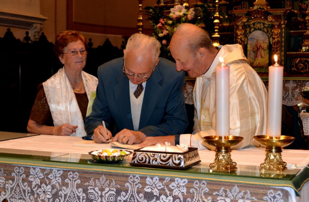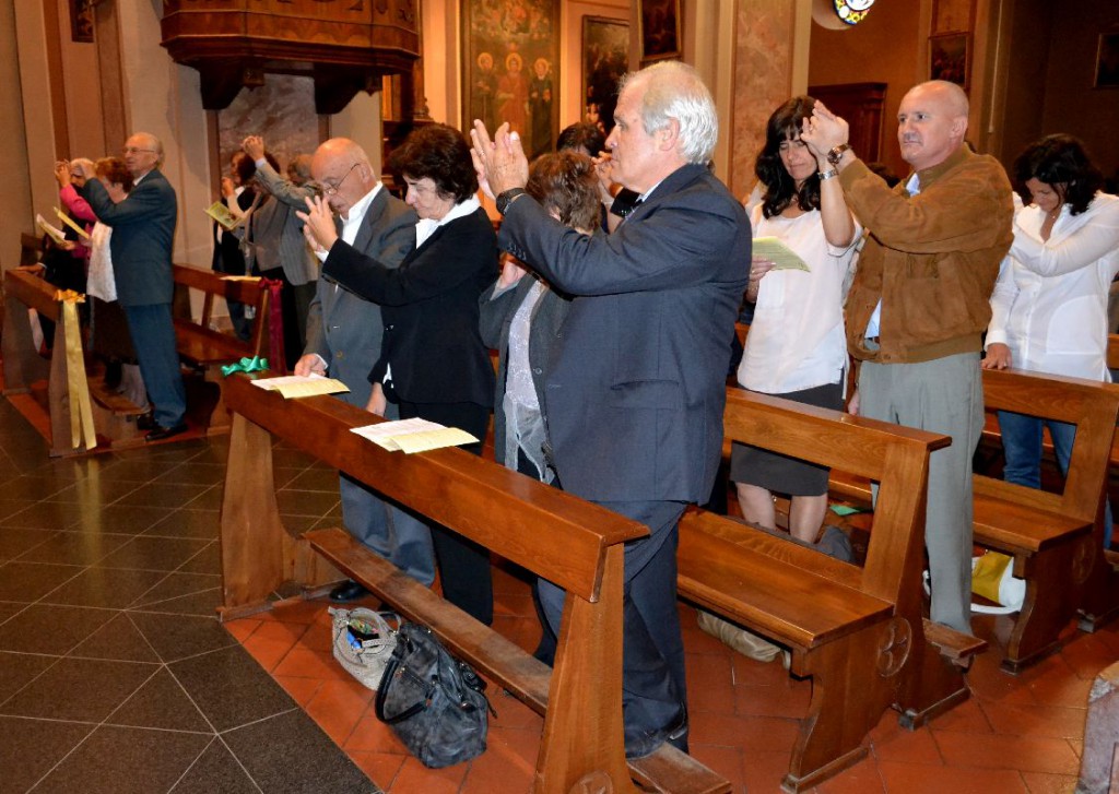 Il parroco ha quindi presentato, una dopo l’altra, tutte le coppie in festa per il traguardo dei 5, dei 20, dei 25, dei 40, dei 45 e dei 50 anni di matrimonio, invitando poi gli sposi a prendersi per mano e a rinnovare le promesse matrimoniali.