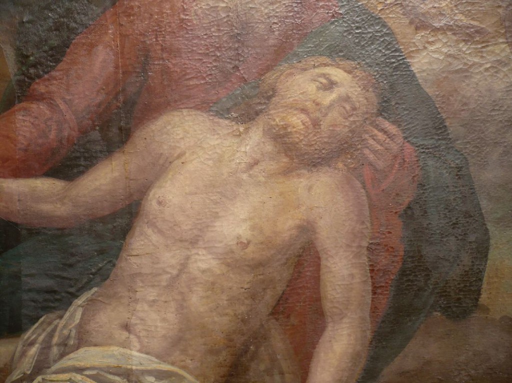 Abbadia_Visione-S.Agostino_tela_restauro_2014 (1)“L’unica nota negativa – osserva sempre Puricelli – è che malauguratamente, dopo la fase di asportazione di tutti gli inserti, sono venute alla luce due grandi lacune che interessano la porzione superiore e centrale sinistra. Fortunatamente, però, le mancanze riguardano soprattutto il fondo del dipinto con le nuvole su cui è disteso il corpo di Cristo e una parte più importante, ma sicuramente ricostruibile pittoricamente, relativa a una porzione anatomica degli arti inferiori della figura”.