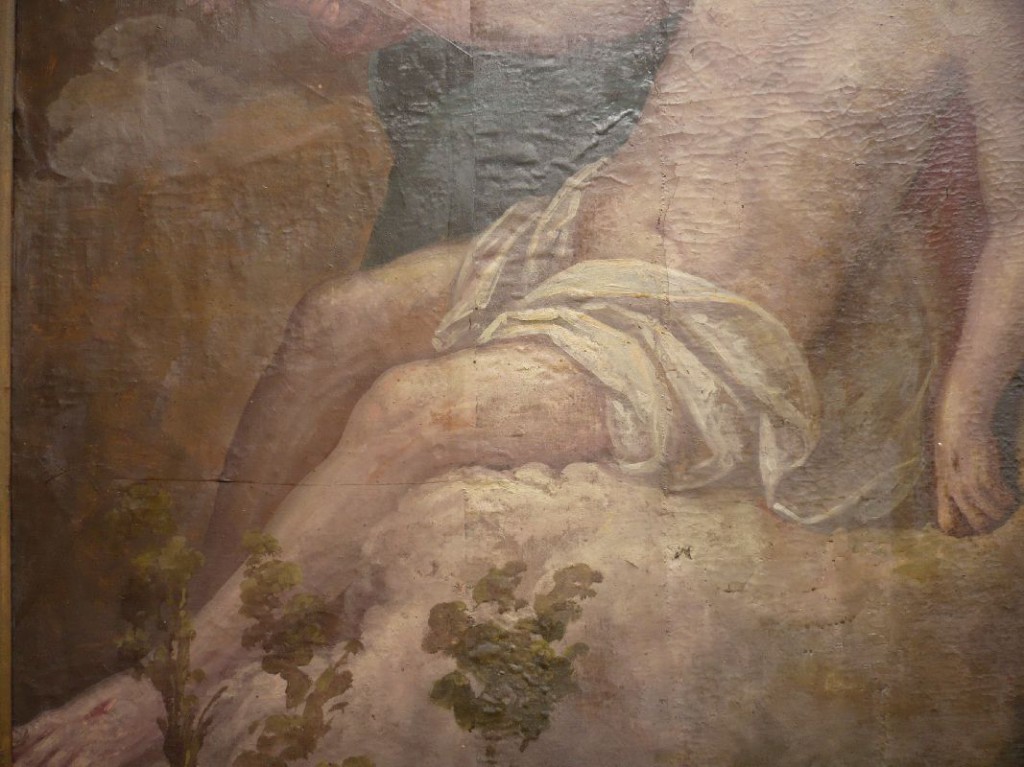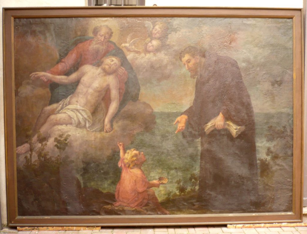 La tela con la “Visione di Sant’Agostino” come si presentava prima del restauro.