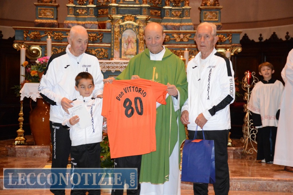 Anche per questo il rito domenicale ha visto una grande partecipazione di fedeli, riuniti nella Chiesa SS. Vincenzo ed Anastasio per le celebrazioni. Don Vittorio è stato festeggiato dai bimbi della parrocchia che nei giorni scorsi avevano preparato un un cartellone e raccolto i loro ‘pensierini’ da donare al parroco domenica a messa. Anche il Centro Sport di Abbadia ha voluto omaggiare il sacerdote con una maglietta da gioco riportante il nome del religioso.