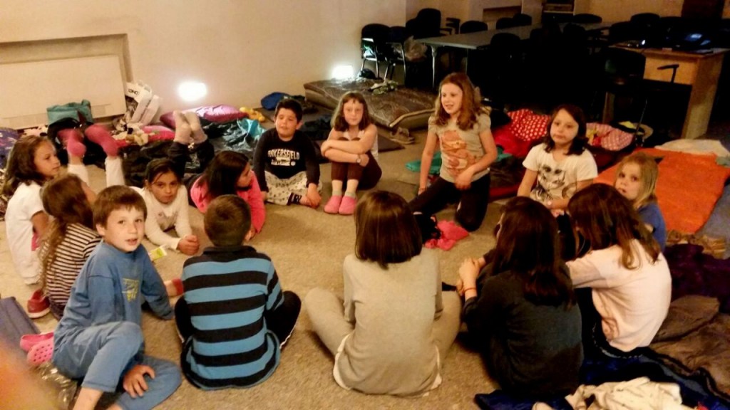 Dopo aver giocato e dopo aver preparato i sacchi a pelo per la notte, i bambini hanno aspettato… il sonno guardando un film.