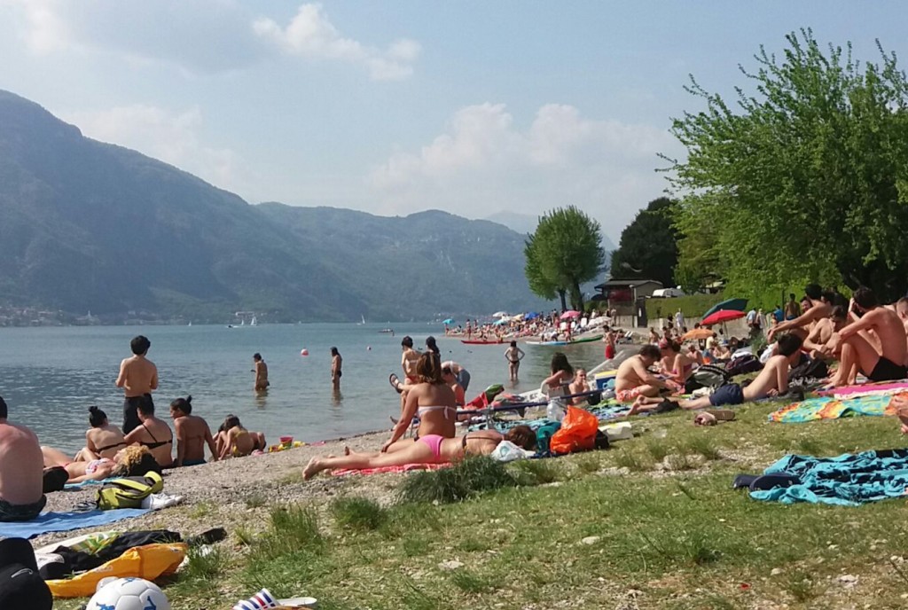 ABBADIA – Sarà anche Primavera ma, grazie alle temperature di questo caldissimo inizio di bella stagione, sul lago pare già di essere in Estate: in tantissimi, nella festività del 25 Aprile, hanno invaso il Parco Guzzi di Abbadia e la sua spiaggia, godendosi il sole e i più temerari anche il primo bagno.