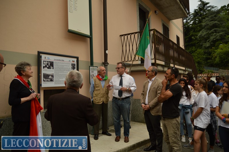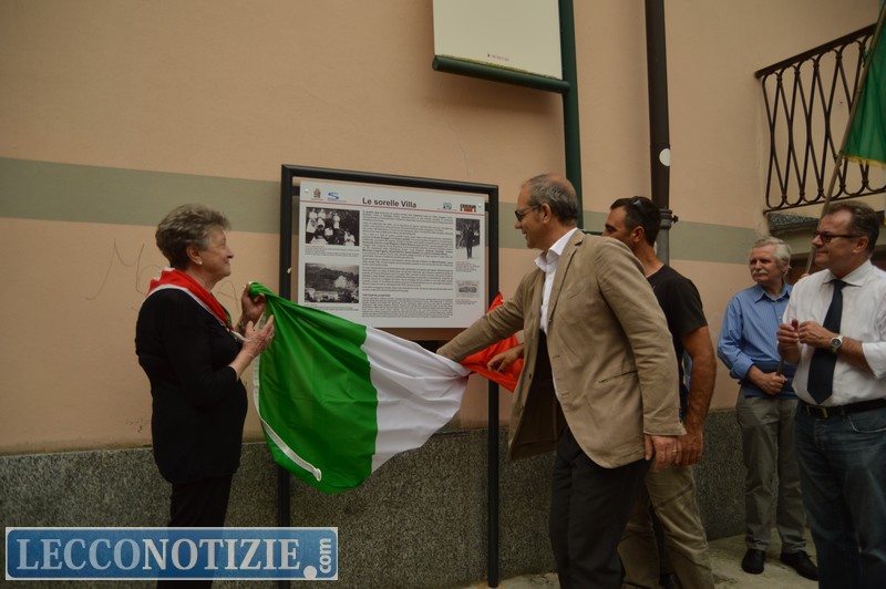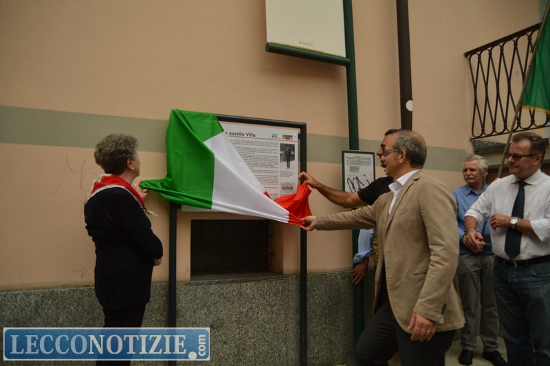 La prima targa è stata affissa ai piedi della casa delle sorelle Villa, da parte alla fermata dell’autobus: “Un luogo storico e molto significativo e, grazie alla vicina fermata di autobus, anche molto frequentato da giovani ragazzi che potranno fermarsi a ricordare e onorare un pezzo di storia locale” come sottolineato da Giancarla Pessina, presidentessa onoraria dell’Anpi di Lecco.