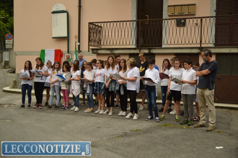 Le due inaugurazioni sono state accompagnate dal coro della scuola media Stoppani, diretto dal maestro Giuseppe Caccialanza, che ha intonato le canzoni tipiche della resistenza italiana.