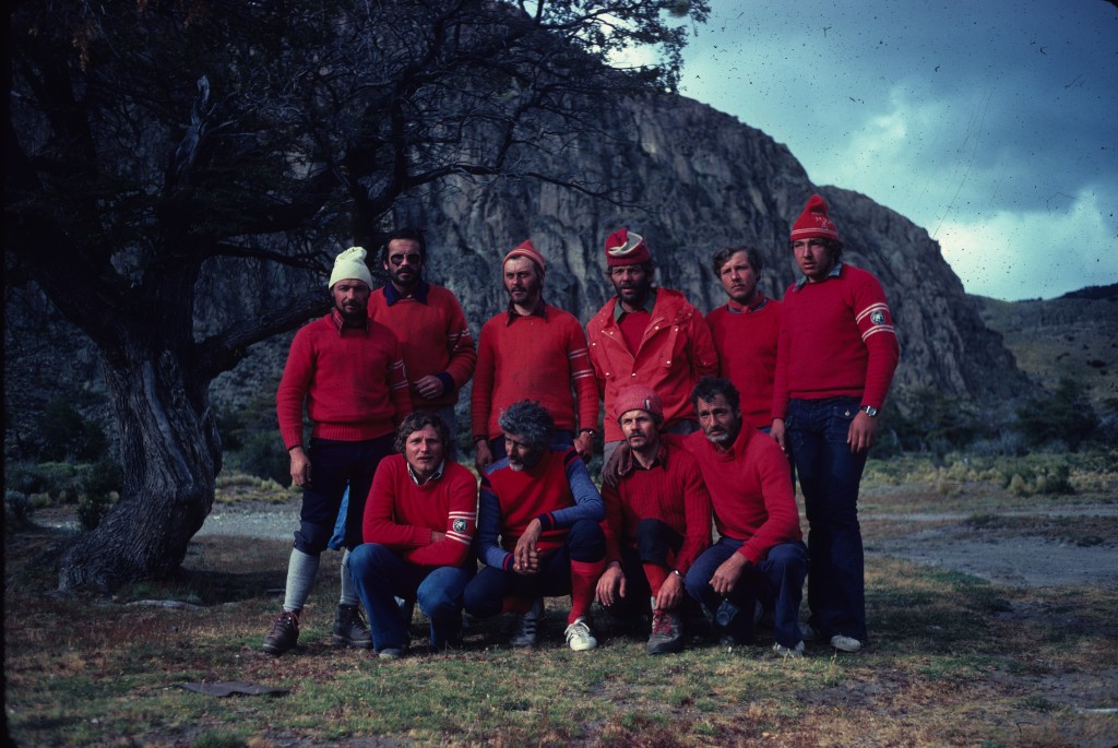 I membri della spedizione al Fitz Roy del 1976. In alto da sinistra a destra Casimiro Ferrari, Gianni Stefanon, Guerino Cariboni, Gianni Arrigoni, Gianluigi Lanfranchi, Floriano Castelnuovo. In Basso, da sinistra a destra: Amabile Valsecchi, Franco Baravalle (medico), Giacomo Pattarini e Vittorio Meles.