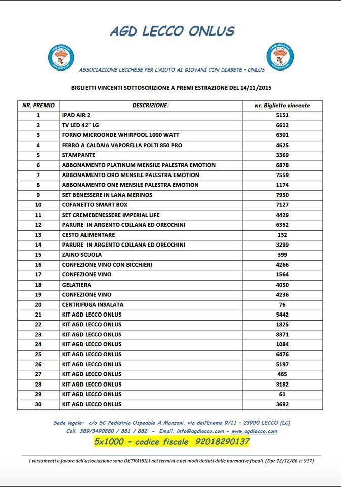 In vendita in questi giorni anche i biglietti della lotteria per sostenere l’associazione: ben 8610 i tagliandi distribuiti e ricchi i premi estratti. I più fortunati si sono aggiudicati un Ipad Air 2 e un Tv Led 42’’.
