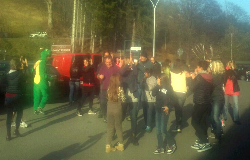 Per l’occasione la vulcanica cuoca Daniela Ratti ha organizzato in collaborazione con InPalestra un flash mob sul piazzale dei Resinelli coinvolgendo una trentina di persone che, sotto la direzione dell’insegnante Samantha Gianola, si sono esibiti in una coreografica lezione di zumba aerobica.