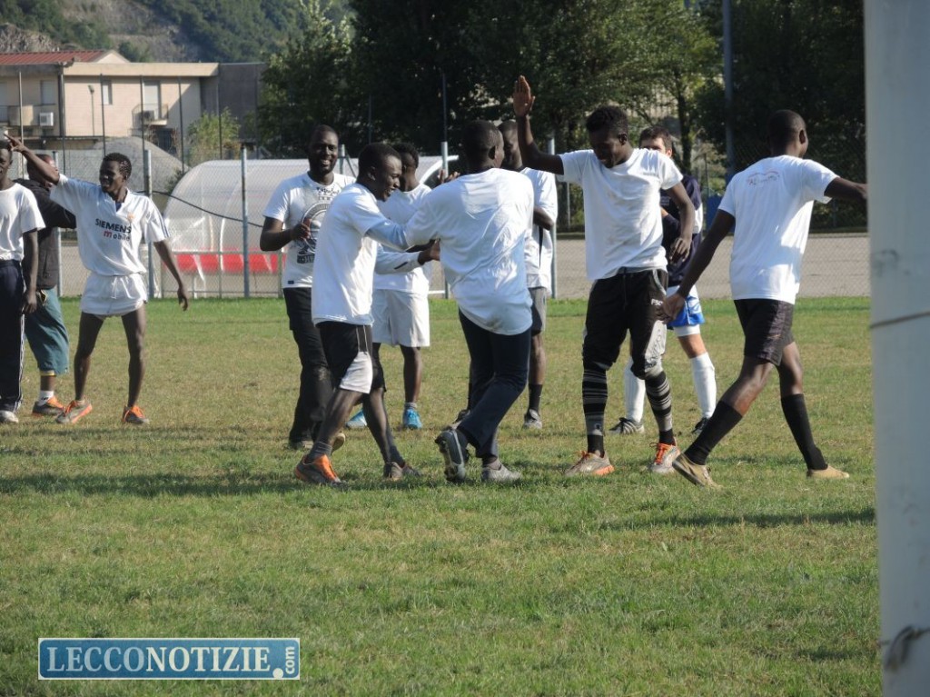 LECCO – E’ finita con un regolamentare 1-1 e quindi ai calci di rigore la partita di calcio solidale tra i ragazzi profughi ospitati in città, iniziativa organizzata dal Comitato Palio Beato Serafino di Chiuso e dal Gruppo Alpini sezione Maggianico/Chiuso e inserita all’interno del calendario della Festa di Lecco (vedi articolo precedente).
