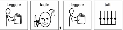 Il seminario dal titolo “Leggere facile, leggere tutti” parla proprio di In-book, libri illustrati con testo integralmente scritto in simboli, realizzati da équipe formate da persone con varie competenze; questi libri sono destinati ai bambini e ai ragazzi che non riescono a capire e a leggere i libri scritti solo con le parole.