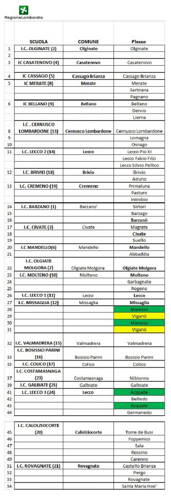 La Provincia di Lecco ha assegnato un contributo di 3.000 euro al Provveditorato di Lecco, che ha raccolto le domande di contributo dei singoli Istituti Comprensivi e le ha inviate a Regione Lombardia. Il contributo della Provincia, integrando le risorse dei Comuni e degli Istituti scolastici, ha permesso di raggiungere la quota totale di 6.580 euro. Il co-finanziamento del progetto era un requisito essenziale per la partecipazione al bando regionale.
