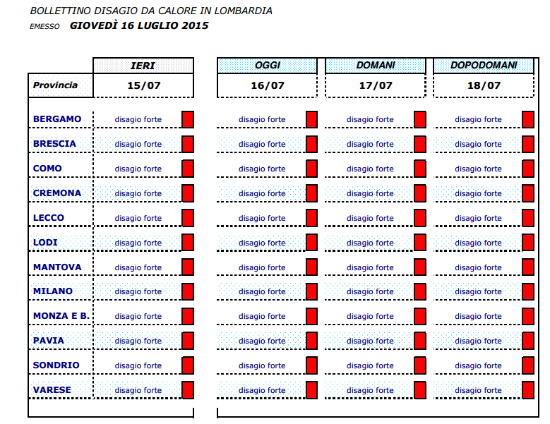 LECCO – Codice rosso per la nuova ondata di caldo prevista anche sul lecchese: nel weekend le temperature sfioreranno i 38 gradi e l’Arpa ha previsto per questi giorni uno dei più alti livelli di allerta sulla scala dei disagi (“disagio forte”).