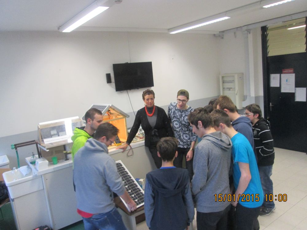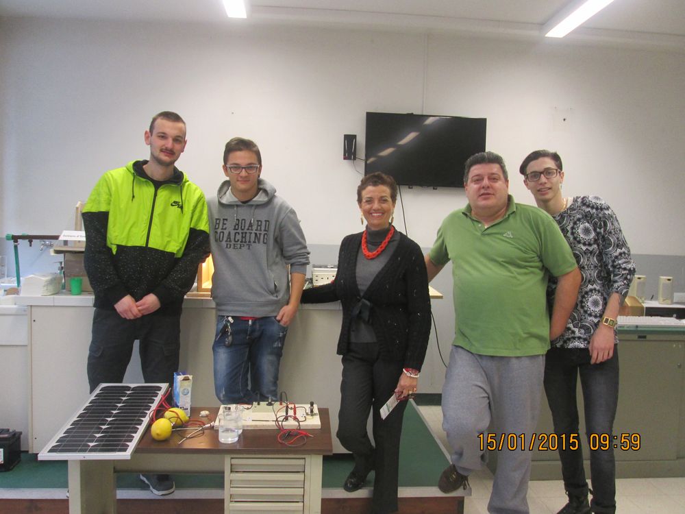 I proff Rondinelli e Gatti e gli studenti Emanuele Cappellini, Andrea Corti e Davide Como (del corso di Manutenzione e Assistenza tecnica) hanno portato con loro una riproduzione in scala di una casa domotica alimentata da una serie di pannelli fotovoltaici.