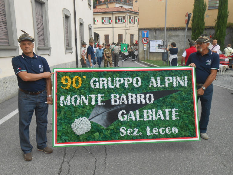 Presenti sul palco anche il tenente colonnello Giorgio Mameli, Il Presidente di sezione Marco Magni, Don Enrico, il comandante Danilo Bolis e il Presidente del Parco Monte Barro Federico Bonifacio. Hanno ricevuto un omaggio di riconoscimento anche i due alpini più attivi e tenaci, Anselmo Riva e Angelo Corti.