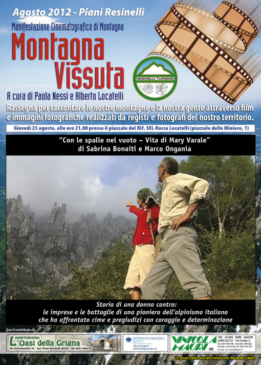 Questa sera si prosegue con la serata dal titolo “Con le spalle nel vuoto – Vita di Mary Varale” di Sabrina Bonaiti e Marco Ongania. Storia di una donna contro: le imprese e le battaglie di una pioniera dell’alpinismo italiano che ha affrontato cime e pregiudizi con coraggio e determinazione. Un docufil prodotto dalla commissione cinematografica del Cai.