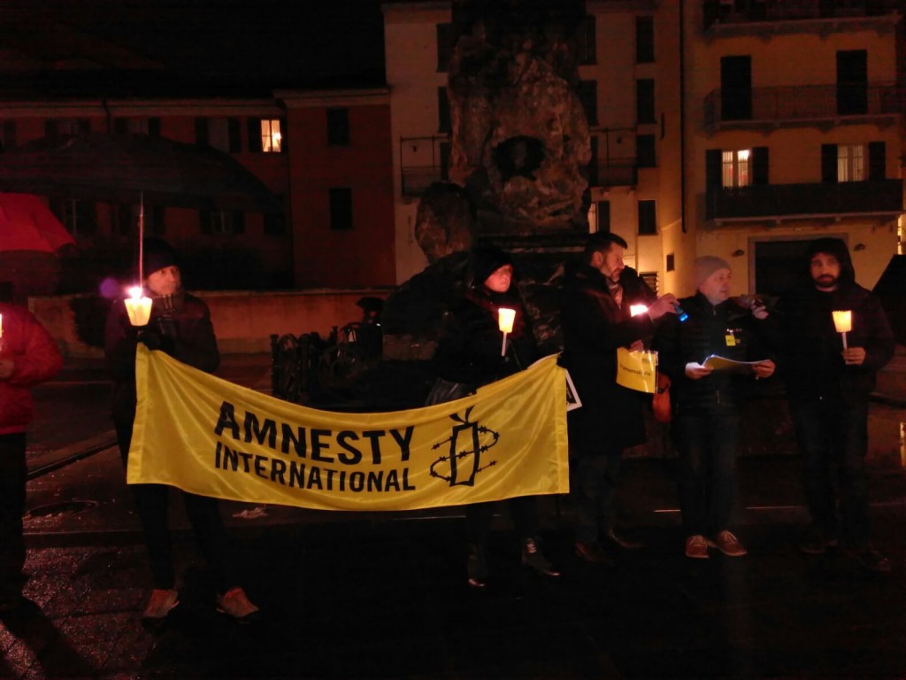 La fiaccolata ha fatto sosta in piazza Cermenati dove due esponenti di Amnesty International di Lecco hanno descritto le circostanze dell’uccisione del giovane italiano e del contesto nel quale tale crimine si inserisce.