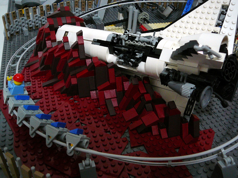 La costruzione copre un’area di 75 x 125 cm (3×5 basi Lego da 32) e nel punto più alto il binario raggiunge i 75 cm. Al momento Teazza ha già superato i 7000 pezzi, sicuramente una volta ultimata la costruzione ne conterà più di 12.000.
