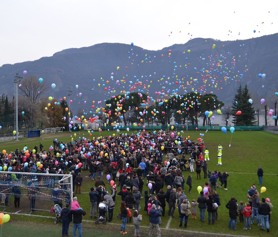 Poi, al campo sportivo comunale, centinaia di bambini a formare un grande albero di Natale, prima del sempre suggestivo lancio dei palloncini.