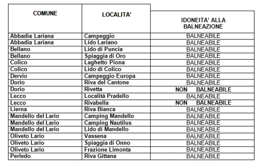 LECCO – Bocciate dagli ultimi controlli dell’ATS (ex Asl) le località di Rivabella di Lecco e Rivetta di Dorio, entrambe giudicate non balneabili dall’autorità sanitaria.