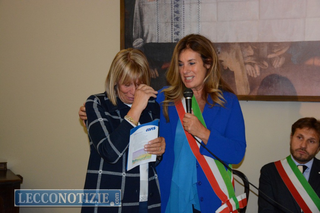 La stessa commozione visibile sugli occhi del presidente Avis Gianni Rocca nel premiare il marito della scomparsa Milena Tocchetti, morta tragicamente sul Resegone lo scorso aprile.
