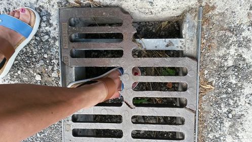 Eloquenti le fotografie, che mostrano la grandezza del buco aperto nel tombino,  in parte coperto con un asse di legno provvisorio: “A non prestare attenzione qualcuno potrebbe finire per incastrarsi un piede, è pericoloso” è il commento degli autori degli scatti.