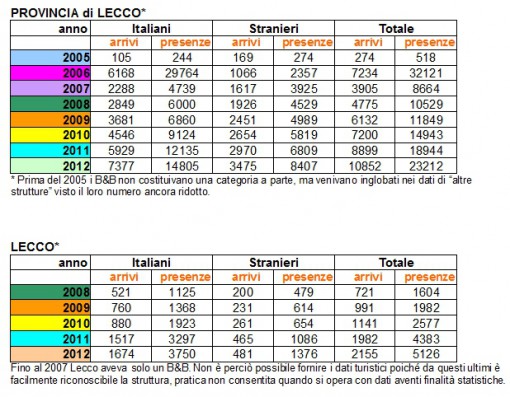Da evidenziare, infine, come le presenze di turisti all’interno dei B&B stiano costantemente aumentando, sia per quanto riguarda i visitatori italiani (244 nel 2005 e ben 14.805 nel 2013, su tutto il territorio provinciale) che per quelli stranieri (169 nel 2005 e 3.475 nel 2013). Di seguito le tabelle sui flussi turistici: