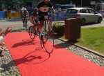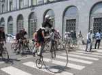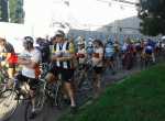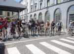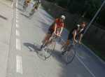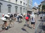 Dopo il ristoro il primo gruppo di ciclisti ad essere giunto a Lecco è così ripartito intorno alle ore 13, destinazione Ghisallo.