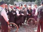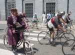 Sono i partecipanti della ciclostorica “La Ghisallo”, la pedalata non competitiva in stile vintage attraverso il territorio lombardo, in un percorso che unisce idealmente due luoghi simbolo del ciclismo, teatro di tante imprese storiche: il Vigorelli di Milano e il colle del Ghisallo a Magreglio