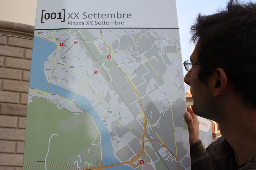 Balicco alla ricerca del ufficio di Linee Lecco. Dopo diversi tentativi andati a vuoto ho chiesto informazioni al titolare dell’adiacente bar. Recatomi presso un ufficio vuoto e senza insegne l’ho trovato chiuso e senza alcuna persona all’interno. A quel punto ho telefonato al numero di assistenza e ho chiesto l’orario di apertura dell’ufficio. “L’ufficio non è ancora in funzione”, ha risposto l’operatore, “deve recarsi presso la sede di Linee Lecco in piazza Bione”.