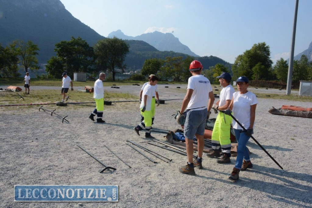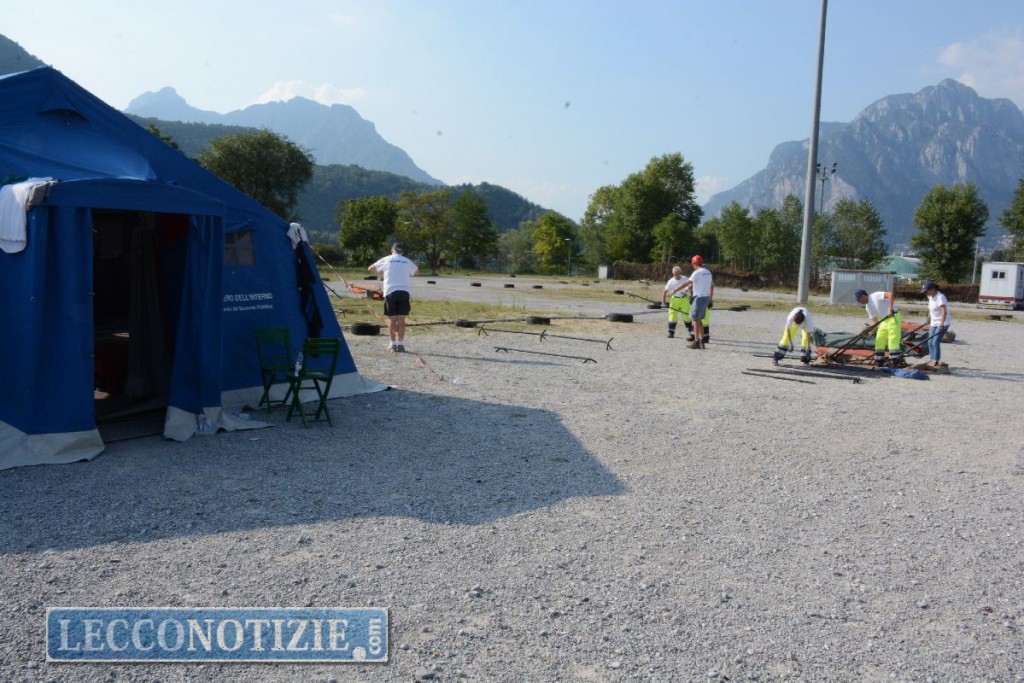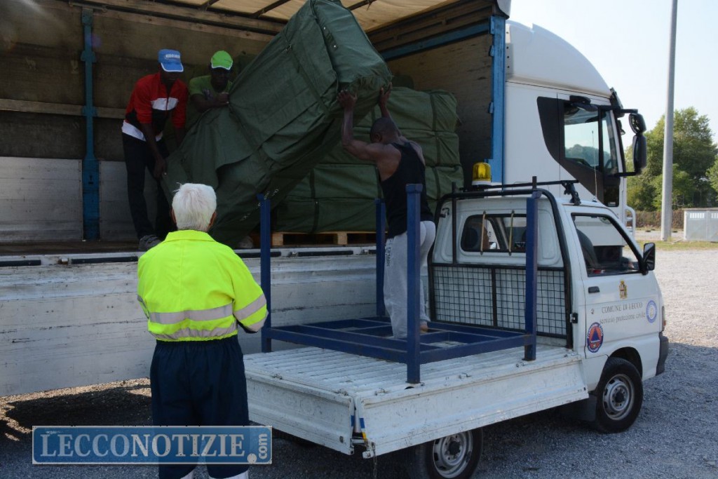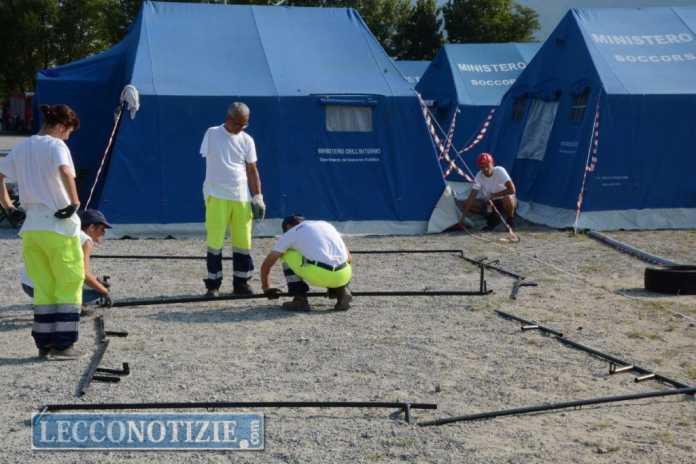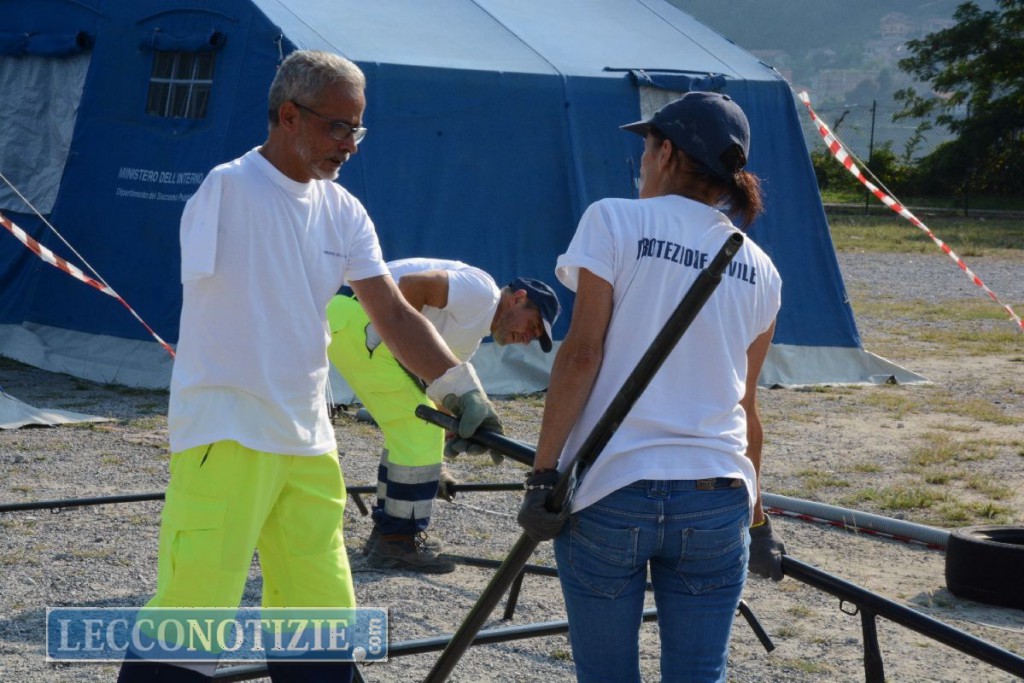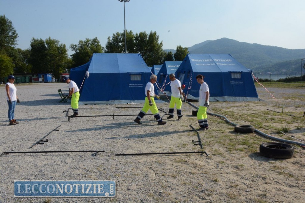 LECCO – Protezione Civile di nuovo al lavoro al campo di accoglienza per migranti allestito al Bione: lunedì pomeriggio, infatti, i volontari hanno iniziato a montare altre tre tende destinate ad ospitare nuovi ospiti del campo.