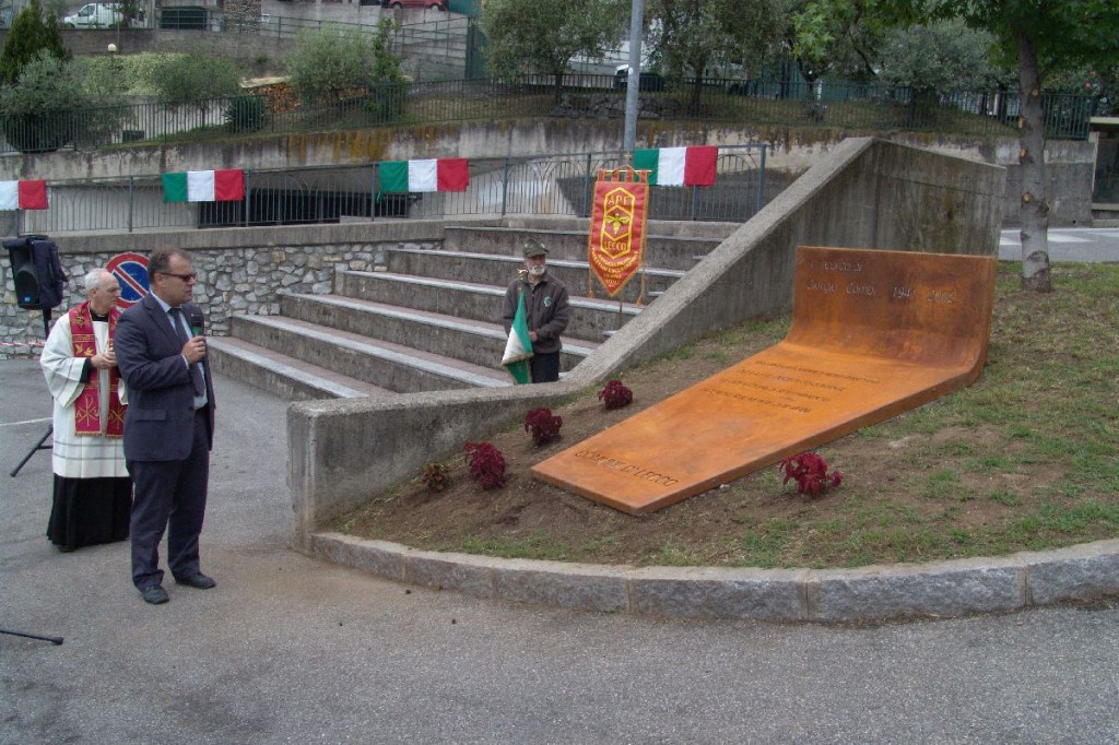 E’ il sindaco di Lecco, Virginio Brivio ad aprire la cerimonia di inaugurazione del monumento dedicato a Giorgio Combi, volontario 60enne di Bonacina scomparso tragicamente nel 2002 mentre era impegnato in un’operazione antincendio sul Monte Due Mani. In sua memoria è stata realizzata una lapide posizionata nei pressi del parcheggio della parrocchia del Sacro Cure, parcheggio che da sabato mattina porta il nome di Combi.