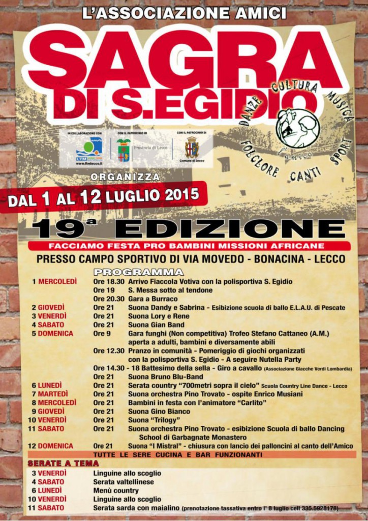 LECCO – Si aprirà mercoledì sera con l’arrivo della fiaccolata votiva la fiera di Sant Egidio del rione lecchese di Bonacina, manifestazione che quest’anno giunge alle sua 19esima edizione e che proseguirà fino al 12 di luglio.