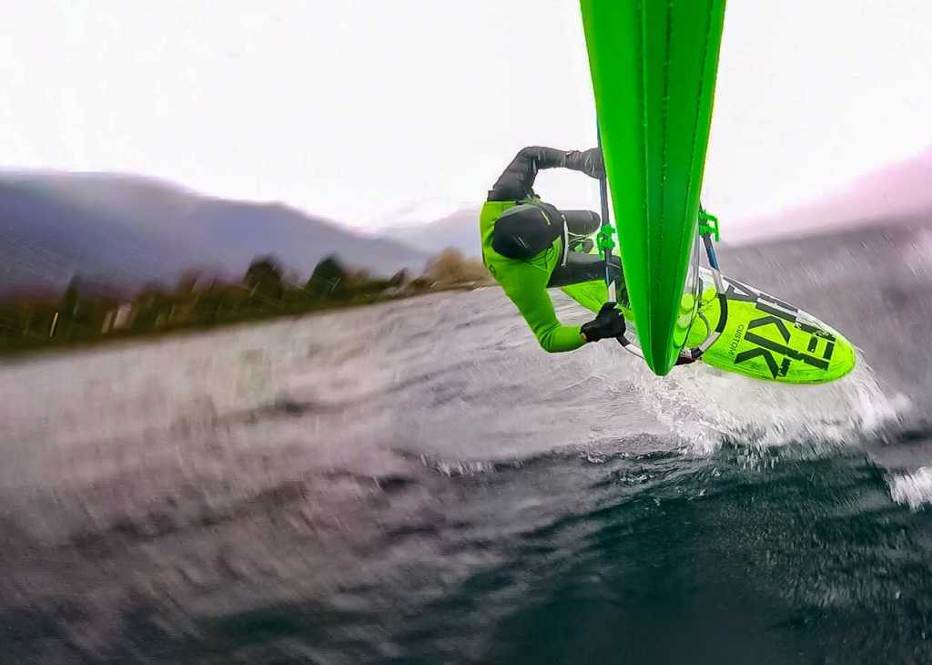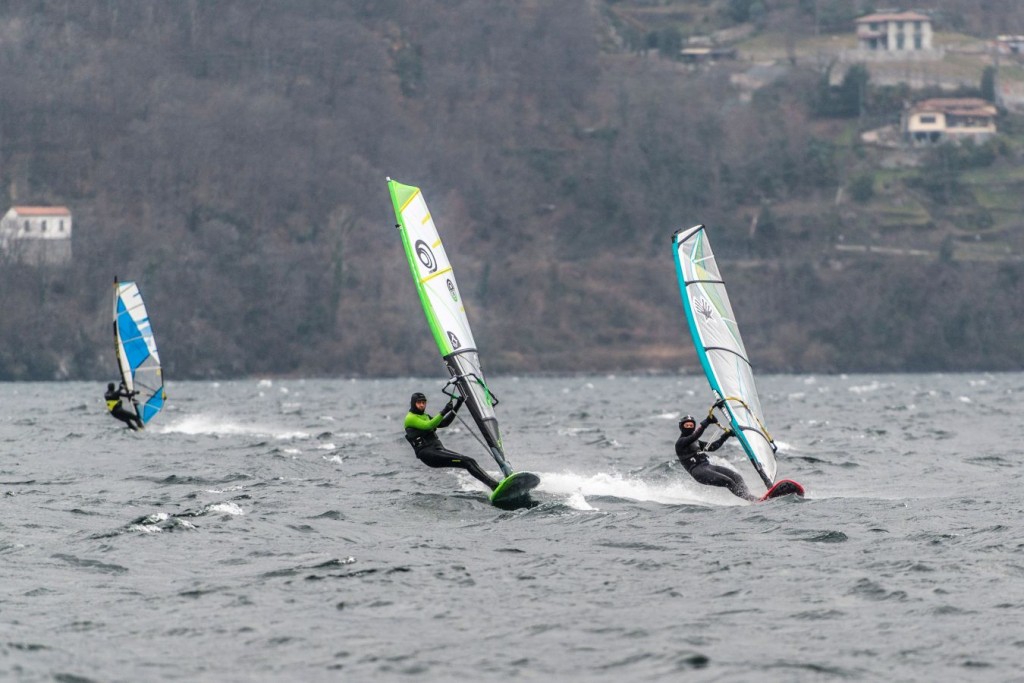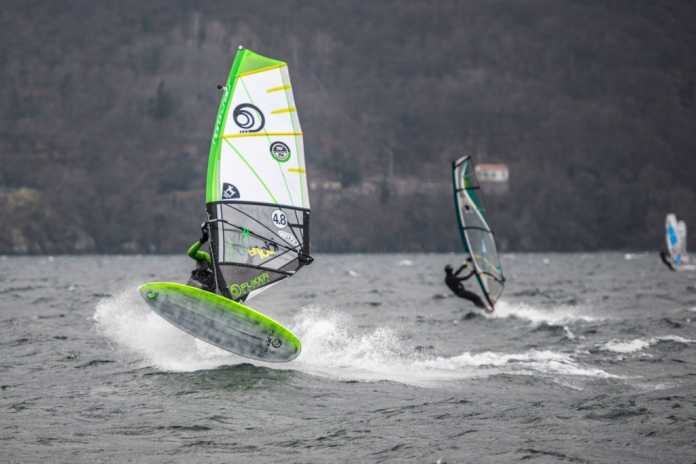 DERVIO – Altro che le calde spiagge della California, sul lago di Como si fa surf anche con il gelo e con la neve: e così anche con il freddo annunciato dall’arrivo di Burbian, il vento delle steppe russe, a Dervio c’è chi non ha rinunciato a tavola e vela.