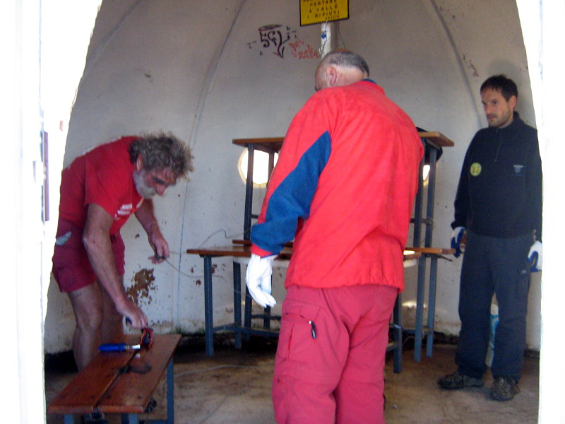 “Stiamo sistemando il bivacco Due Mani sull’omonimo monte – fanno sapere dal Cai Ballabio – sabato scorso abbiamo provveduto a eliminare il vecchio pavimento che era devastato da trent’anni di servizio ma soprattutto dalla noncuranza e dalla male educazione della gente. Lo abbiamo sostituito con uno nuovo, poi abbiamo sigillato il bivacco perchè in alcuni punti entrava acqua. Per ora abbiamo svolto questi interventi, in futuro ci saranno altri lavori da fare, come sistemare gli oblo e ridipingere internamente il bivacco”.