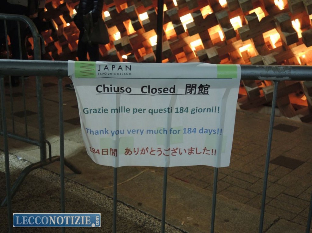 La chiusura dei cancelli è arrivata con mezz’ora di ritardo: 17.35, rispetto alle 17 preventivate. Alle 18 il via della cerimonia di chiusura. Alle ore 19 il presidente Mattarella ha dichiarato la chiusura di Expo, salutata con un concerto di fuochi d’artificio che hanno illuminato i corridoi dell’esposizione e il simbolico Albero della Vita tra l’entusiasmo generale. Pochi ma lunghissimi minuti, in cui l’Expo ha idealmente abbracciato tutti i suoi organizzatori e visitatori.