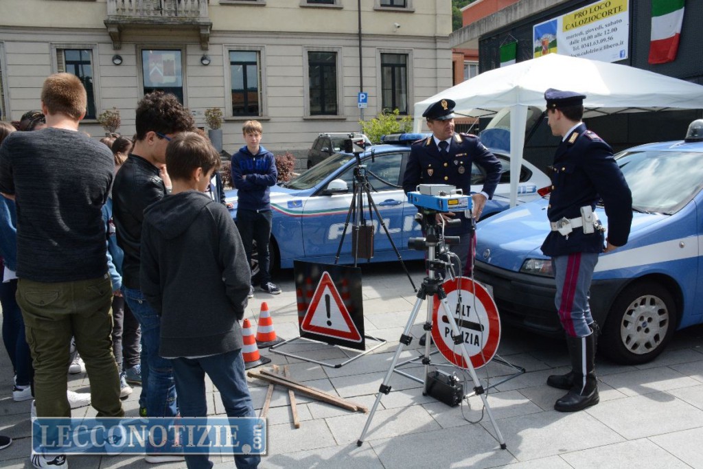 La piazza antistante il municipio si è riempita con gli stand della Polizia Locale, dei Carabinieri, della Polizia di Stato, dei Volontari del Soccorso di Calolzio, della Protezione Civile e dell’Associazione Vittime della Strada, che hanno accolto gli studenti di diverse scuole della cittadina, tra cui le classi delle scuole medie A. Manzoni e della scuola dell’infanzia Caterina Cittadini.