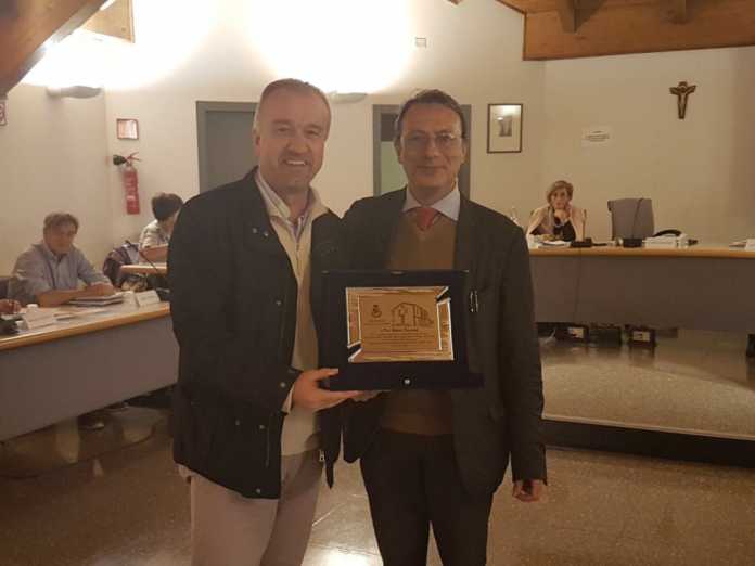 CALOLZIO – Il sindaco Cesare Valsecchi a nome del Comune di Calolziocorte ha consegnato una targa di riconoscimento al vicario Don Roberto Trussardi, per il lavoro svolto nelle parrocchie della Valle San Martino.