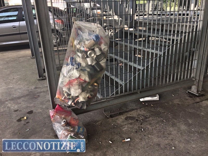 CALOLZIOCORTE – Sacchi dell’immondizia, lattine e cartacce: passano i mesi ma il parcheggio a due piani vicino all’LD market nei pressi della stazione ferroviaria non cambia il suo volto di degrado e sporcizia.