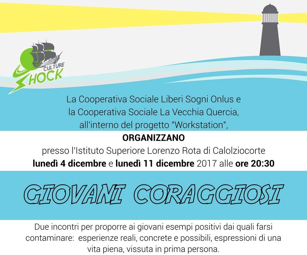 Queste esperienze sarà possibile ascoltarle lunedì 4 e 11 dicembre (ore 20.30) durante gli incontri dal titolo “Giovani coraggiosi. Per una volta ascoltiamoli”. L’iniziativa, che porta la firma delle cooperative Liberi Sogni onlus e La Vecchia Quercia onlus, è in programma al liceo Rota di Calolziocorte.