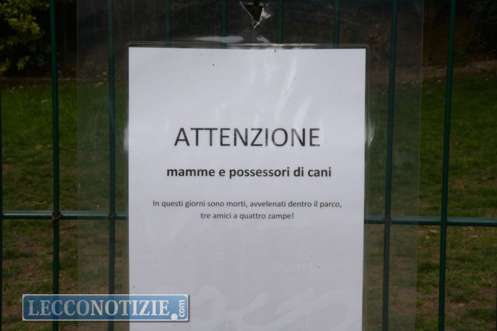 LECCO – “Attenzione mamme e possessori di cani, in questi giorni sono morti avvelenati dentro il parco tre amici a quattro zampe”. L’allarme è stampato su anonimi cartelli sistemati in questi giorni al parco di via Belvedere all’ingresso dell’area dedicata ai cani e si è subito diffuso con il passaparola attraverso il web tra gli amanti degli animali.